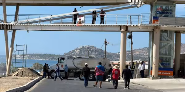 Ciudad de Mexico, 07 de abril de 2026.- La mañana del lunes 6 de abril fue colocada una presunta narcomanta en un puente de la salida norte del municipio de La Paz, Baja California Sur, a la altura de Cola…