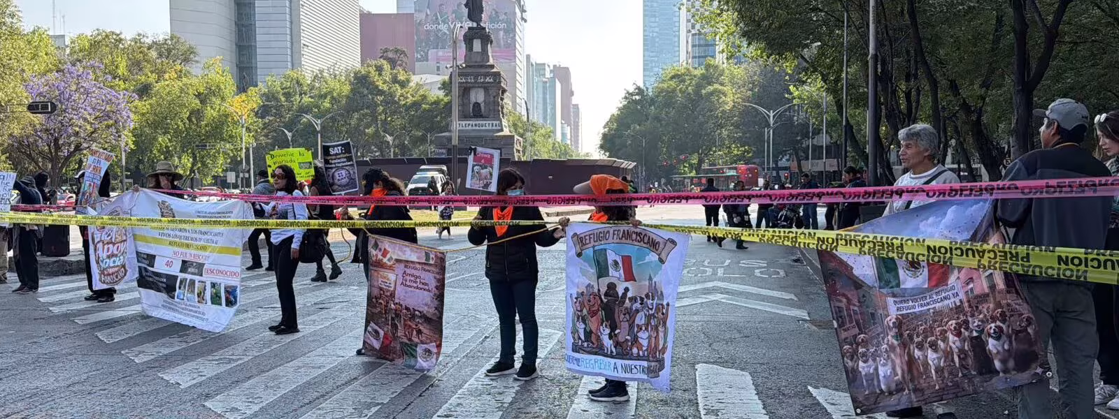 Activistas bloquean Paseo de la Reforma exigiendo regreso de perros del Refugio Franciscano