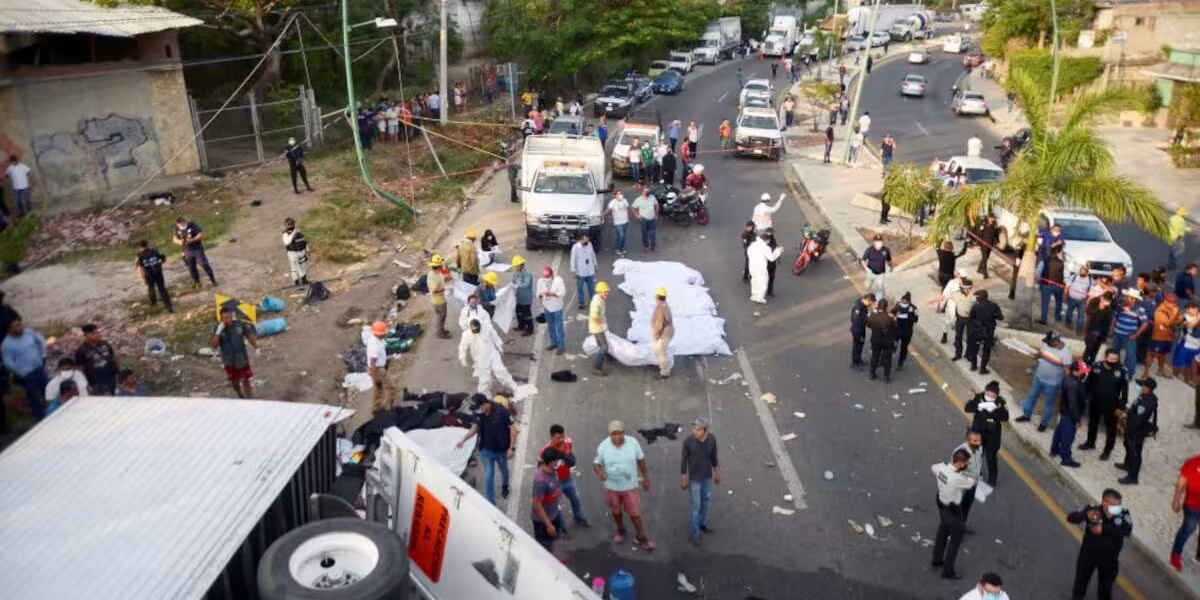 El accidente tuvo lugar el 9 de diciembre de 2021 cerca de Tuxtla Gutiérrez. Según la Comisión Nacional de los Derechos Humanos (CNDH), 56 personas fallecieron en el siniestro, mientras que el Departamento de Justicia de EE.UU. reporta más de 53 muertos. Al menos 160 migrantes indocumentados viajaban en el camión con remolque cuando el conductor perdió el control en una curva pronunciada a más de 100 kilómetros por hora, provocando que el vehículo volcara y dejando más de 100 heridos.