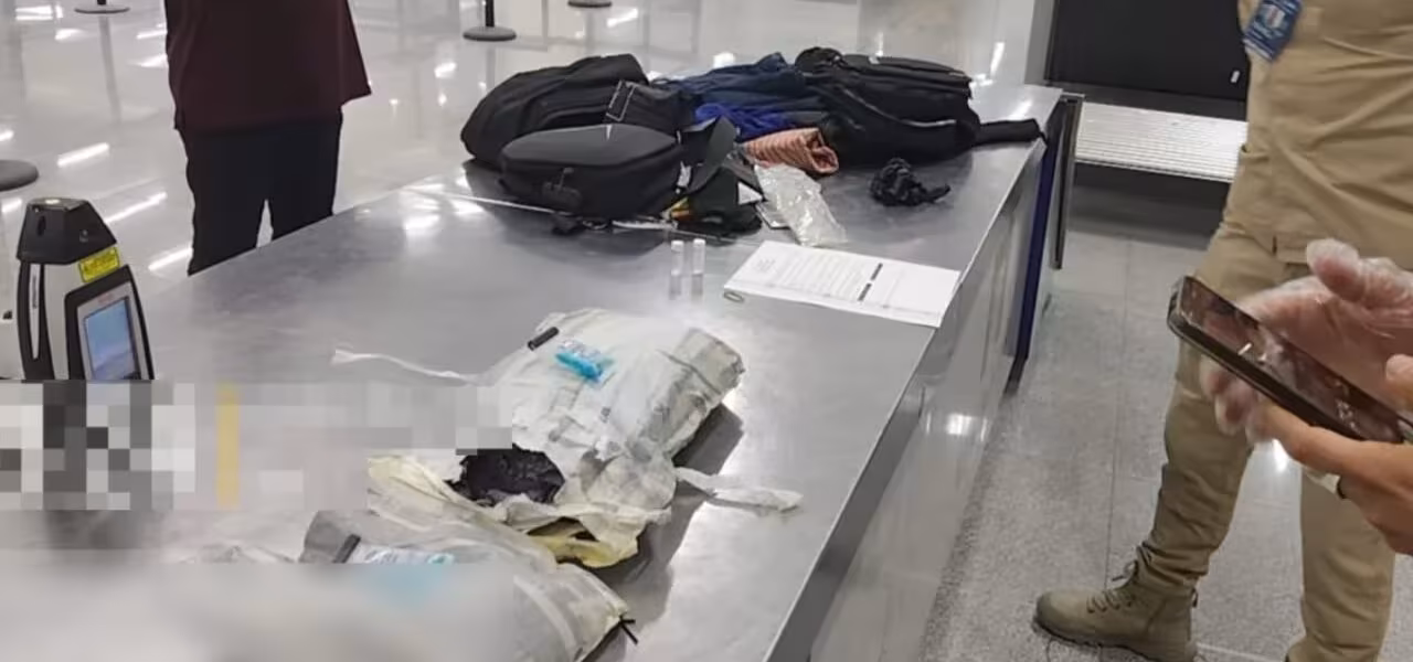 Ciudad De México, 05 de abril de 2026.- La Secretaría de Marina (Semar), en coordinación con autoridades aduaneras, aseguró presunta droga oculta en el equipaje de un pasajero en el Aeropuerto Internacional de la Ciudad de México (AICM).