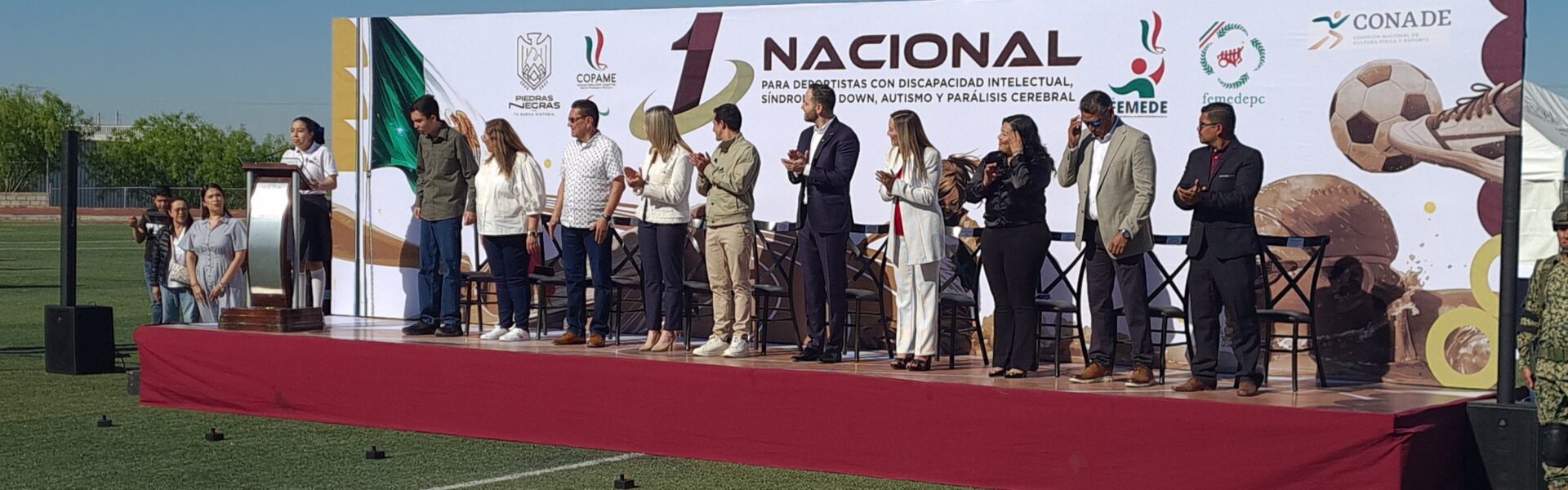 Piedras Negras, 22 de marzo de 2026.- La Comisión Nacional de Cultura Física y Deporte (Conade) inauguró el primer torneo nacional dedicado a deportistas con discapacidad intelectual, autismo y parálisis cerebral, evento que se realiza en la ciudad de Piedras Negras, Coahuila. La ceremonia de apertura contó con la presencia de Rommel Pacheco Marrufo, titular de la dependencia federal, y reunió a aproximadamente 600 atletas provenientes de 24 delegaciones distintas.