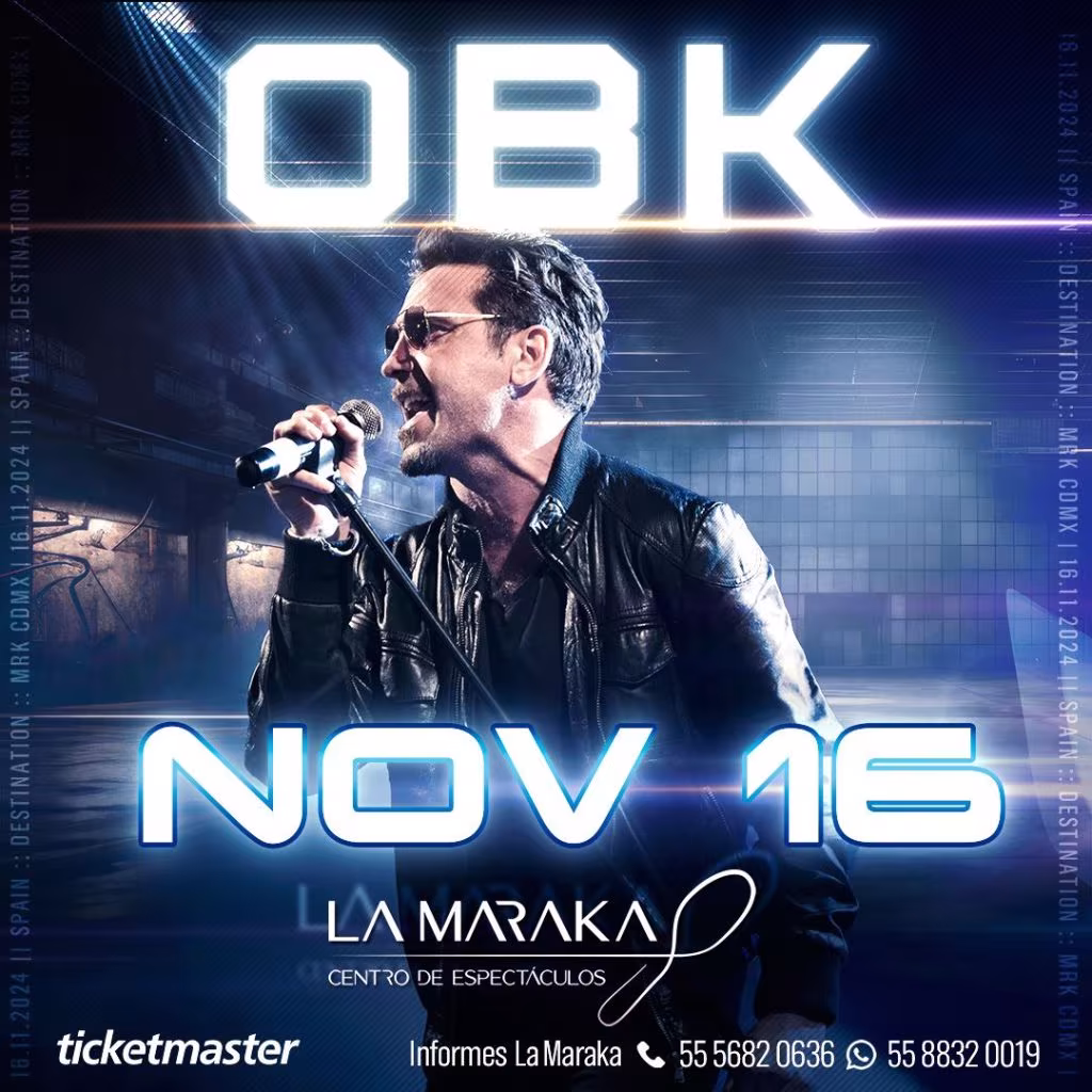 OBK se presenta el Sábado 16 de Noviembre del 2024 a partir de las 20:30 horas en La Maraka. Boletos a la venta en el Sistema Ticketmaster y en taquillas del inmueble.