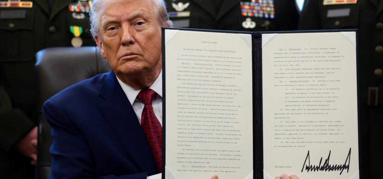 La orden refuerza la postura de Trump de tratar la crisis del fentanilo —principalmente proveniente de precursores chinos y procesado en México— como un asunto de seguridad nacional.