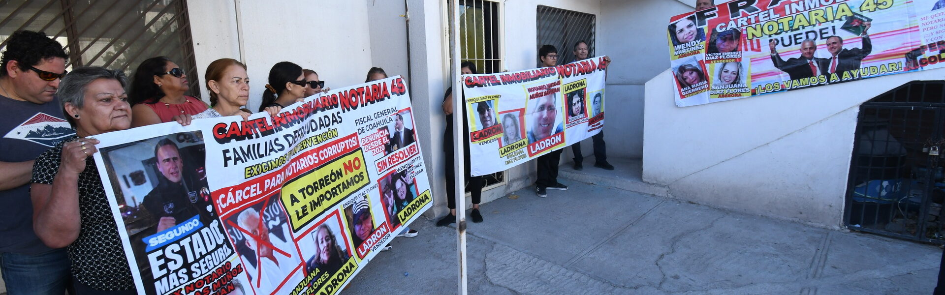 En un caso conexo en Coahuila, el secretario general de Gobierno, Óscar Pimentel González, informó que el gobierno estatal mantiene comunicación con la Fiscalía General de la República (FGR) para apoyar en la expedición de una ficha roja contra Fernando Nicolás ‘N’, extitular de la Notaría Pública Número 45, señalado por su participación en un fraude inmobiliario.